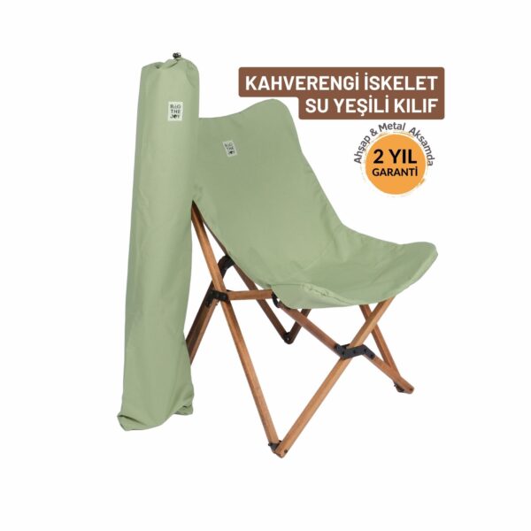 BAG THE JOY KATLANIR AHŞAP KAMP SANDALYESİ – KAHVERENGİ İSKELET – SU YEŞİLİ KILIF
