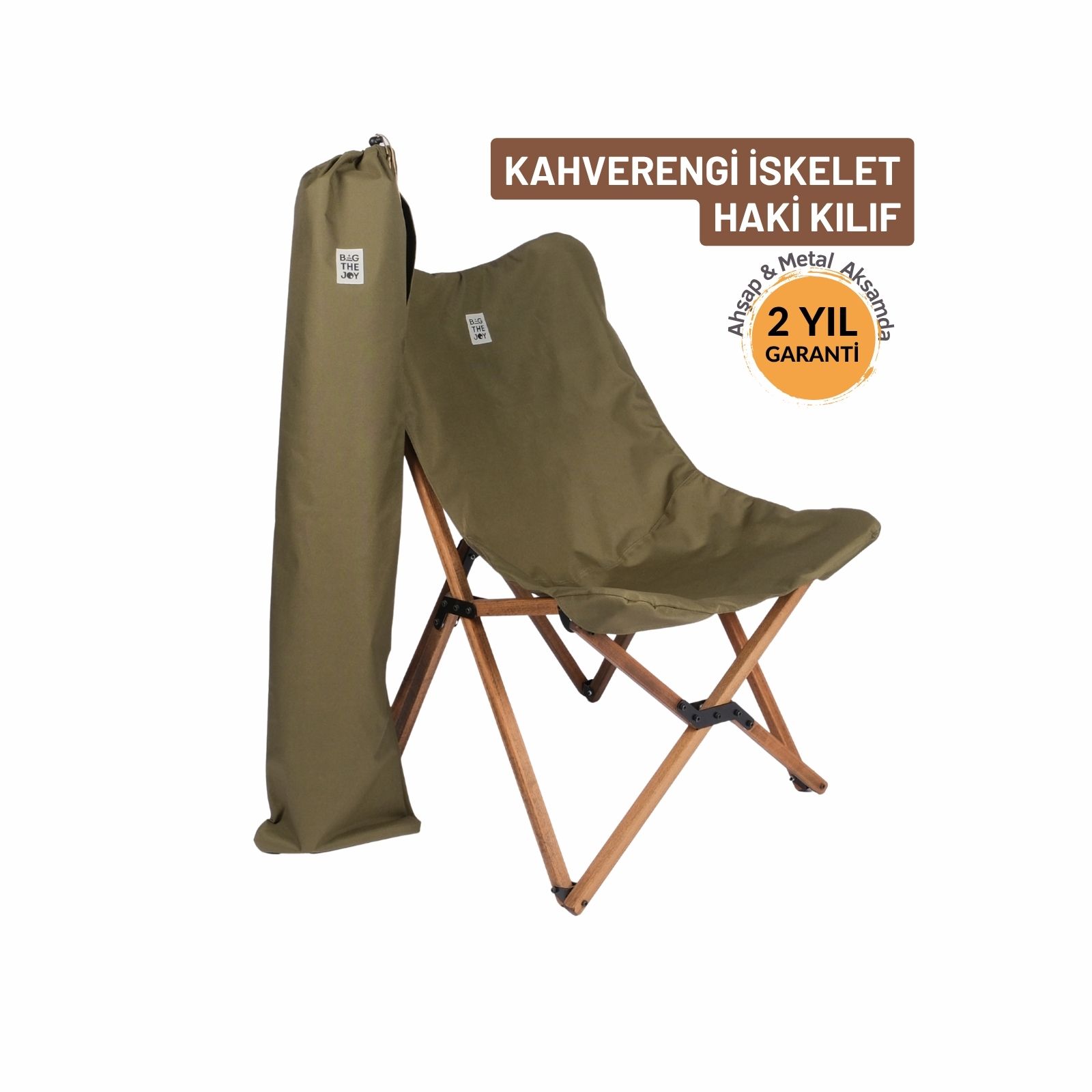 BAG THE JOY KATLANIR AHŞAP KAMP SANDALYESİ – KAHVERENGİ İSKELET – HAKİ KILIF